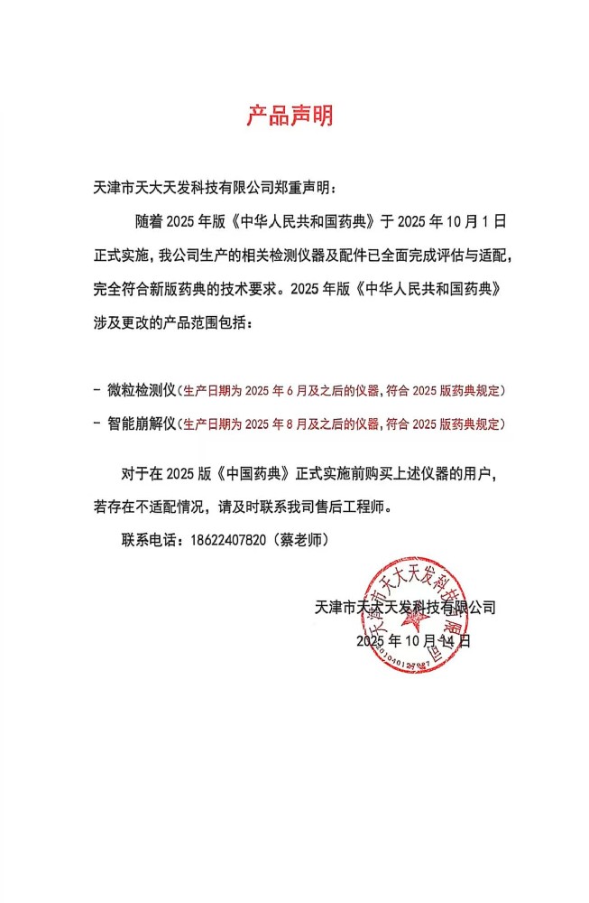 | 尊敬的各界朋友們: 歡迎您進入天津市天大天發(fā)科技有限公司的網(wǎng)站進行瀏覽,首先感謝各界朋友多年來對天大天發(fā)藥品檢測儀器和分析儀器的關心與支持! 天津市天大天發(fā)科技有限公司是通過ISO9001質量管理體系認證、ISO14001環(huán)境管理體系的認證的高新技術企業(yè),是專業(yè)的藥檢儀器和分析儀器的制造廠商。 我們的產品包括藥品溶出儀系列、微粒檢測儀系列、內毒素檢查儀系列等40余種產品,主要產品覆蓋了全國所有省區(qū),部分產品已進入海外市場。公司在藥檢領域樹立了良好的品牌形象,贏得了廣大用戶的贊譽。 公司將更好地適應瞬息萬變的市場,增強企業(yè)的核心競爭力。抓住全球經(jīng)濟飛速發(fā)展的歷史性機遇,以創(chuàng)新精神進行新的創(chuàng)業(yè)。以高起點、高速度、高效率創(chuàng)造出中國藥品檢測儀器和分析儀器領域中的品牌形象,立足中國,走向國際。 我們熱切希望您成為天大天發(fā)科技有限公司的合作伙伴! |